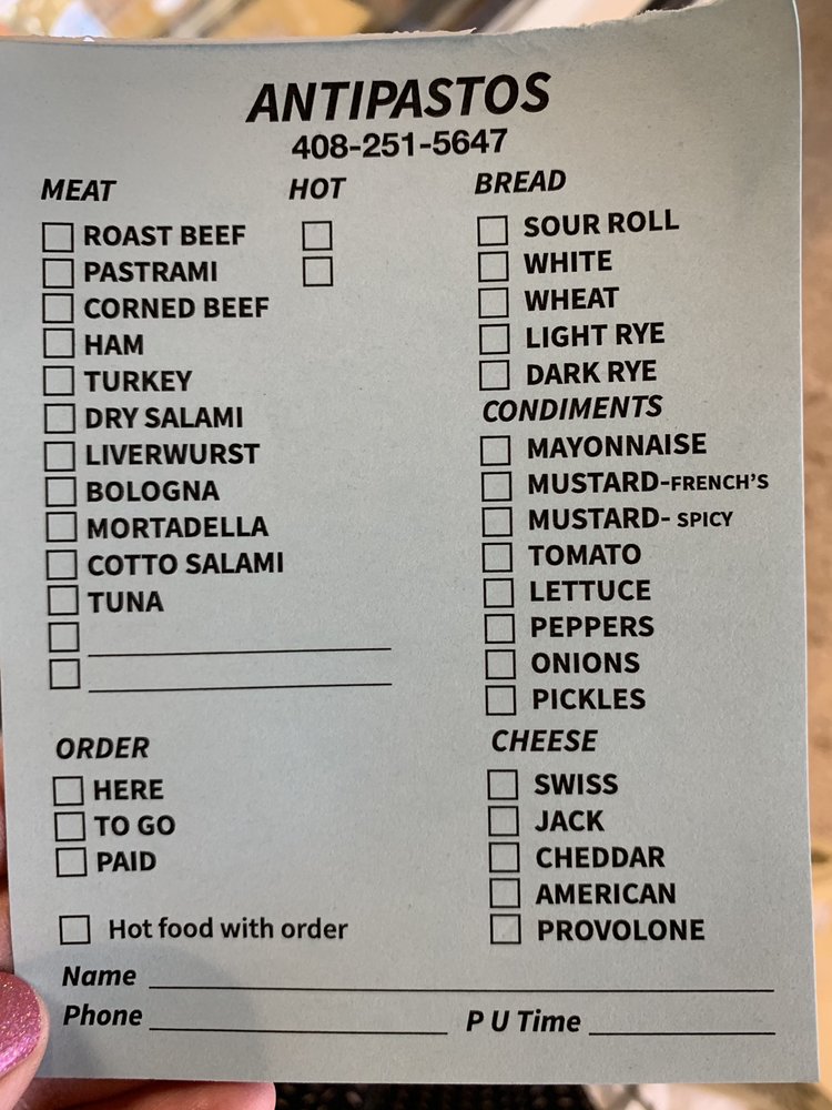 Antipasto’s By Derose Gourmet Meat Fish & Deli Menu